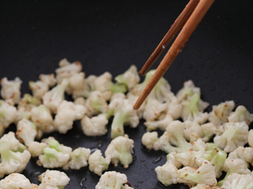 乾辣椒去籽後辣度大為降低,加熱炒過後點點辣香撲鼻,吃起來卻不辣口,搭上白花菜清甜更是美味!
